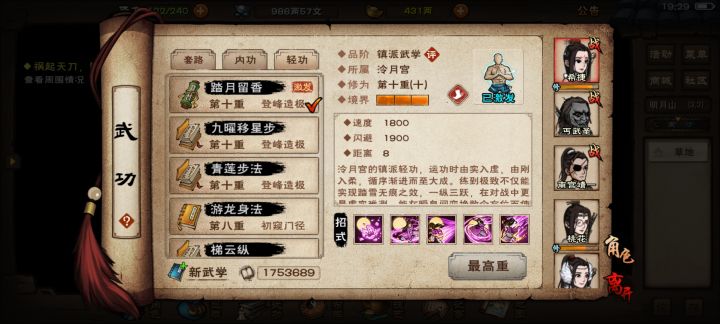 太乙女剑开的荒,拿了太乙全秘技和镇派剑化玄之后(拳没拿),现在在泠月,一样从进阶开始,上乘,镇派全部学完再出的师,目前泠月剑全部拿完,女拳还剩2层,下一步准备?①去天刀拿千铸②去极乐拿道心目前全角色90级角色武学搭配情况(没有镇派的忽略不计)主角:化玄(舞殇、女拳)、辉月(玄微、离火)、踏月留香(九耀)月蓉:西子、碧波、追魂步商昊乾:太虚(破锋、伏羲、心音)、血魔经、天元落苏念雪: