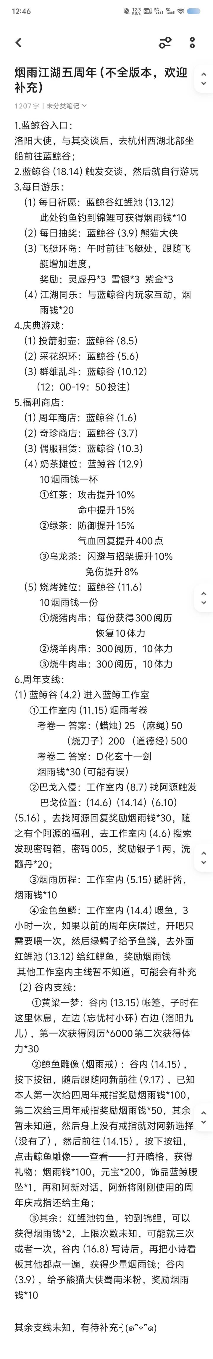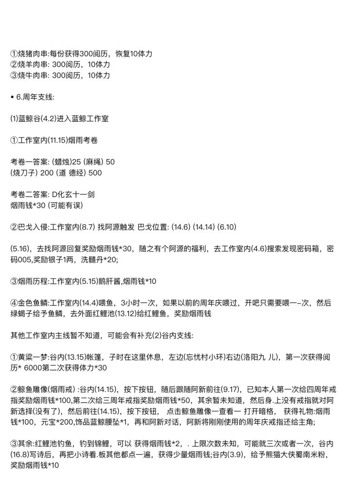 烟雨江湖周年庆攻略(已更新)