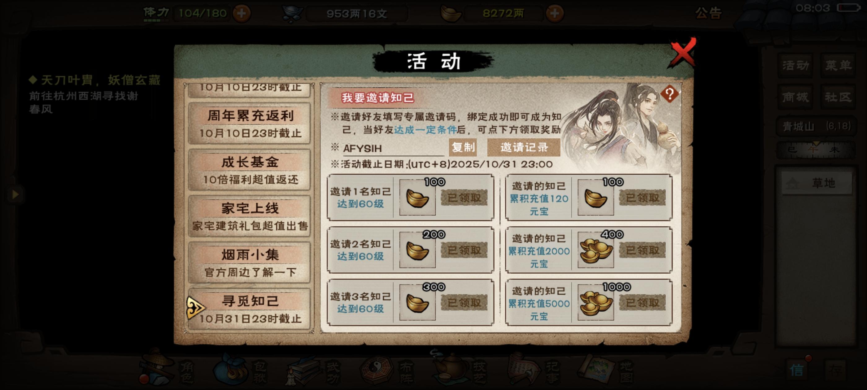 我的邀请码AFAMMX,烟雨江湖了解一下