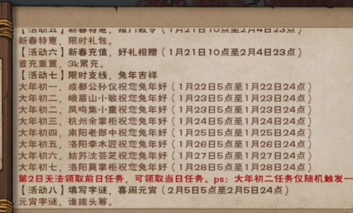 tap里有没有我不知道,反正是找不到了,这是我自己去其它渠道找的,而且初二活动也对的上,估计剩下的和去年一毛一样#攻略#新年支线