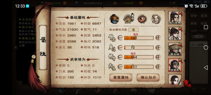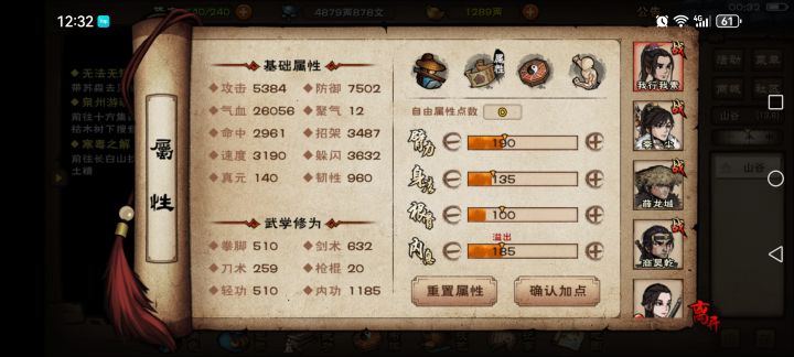突然发现为啥老六要和凌波卷速度啊,精进30破闪,经脉5,太极拳意5,道藏10,拈花4,斩影坠4,碎片红白11,这里就69破闪了,军争还有加2,云垂边后也有加双破可选还有先天天赋妙手空空5毒3破闪戒指材料1破闪还有个人装备歪出来的破闪。大致算了下打底有个70左右破闪,上限能有个80左右破闪,还多出两个秘技位叠肉,用来专门错位偷鸡还是不错的,感觉比和大佬能堆个7000多速的凌波抢速度来的稍微