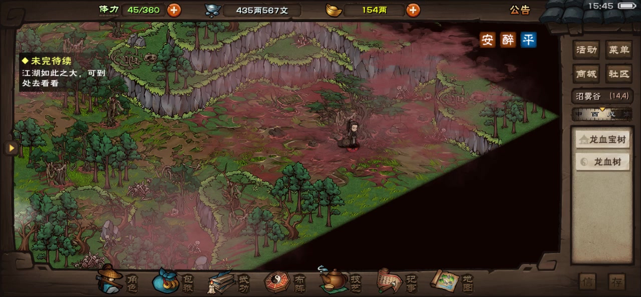 好久没发攻略了 正好明天开新区肯定会有很多萌新 这边就发个让萌新少走弯路的tips吧 搬运自wiki1.泰山二当家杀死后可以摸尸体拿点墨剑法。 (唯一武学,给剑随当控制打某些boss有奇效) 铁砂掌点墨yyds2.洛阳打死张雄后摸尸体得血煞功。(要摸四次,第一次只有钱)3.少林过木人巷后拿到的菩提子等300佛法后吃可以额外获得一点内息属性。4.少林童子功最好开局19天内拿到,可以第一年就