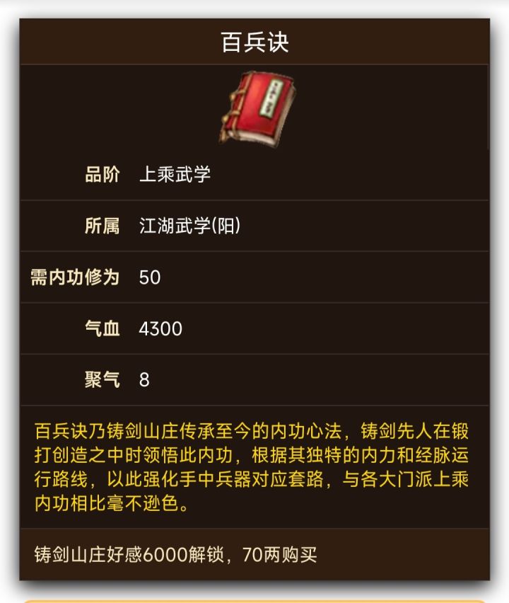 57级 依靠上乘内功—百兵决 轻松打掉血衣楼。