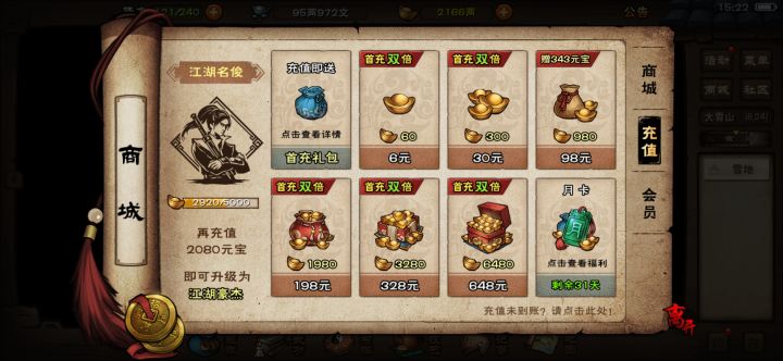 月卡领取网络连接失败,体力没到,元宝不知道到没到,没提示上传存档,邮件没有月卡邮件