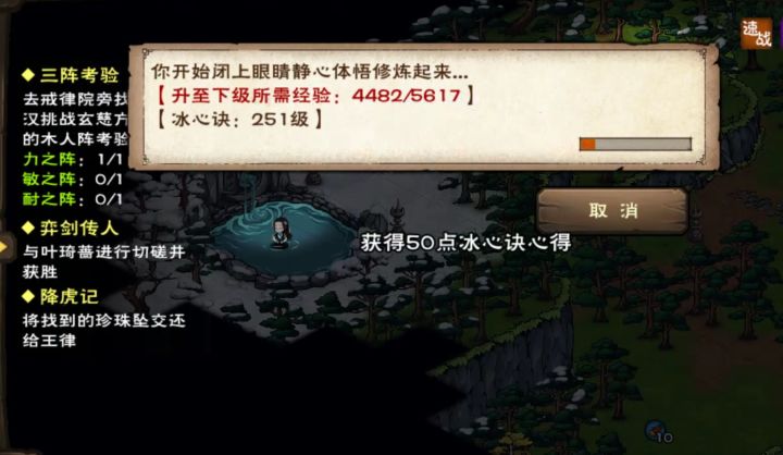 打坐等挂机功能有个很难受的地方,读条不可以缩放到人物头顶吗?再点击人物或者读条再放大就好。挂机功能不能移动这个正常,但是不能不给其他一般的操作吧?就叫存档都点击不了,读条框置顶了。建议优化一下体验有同感的顶一下,希望开发能看到