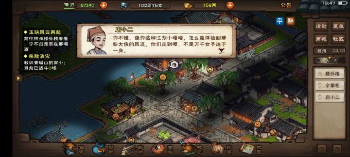 和对象说了一个星期还是不愿意给我一起玩😂只能自己来找一位知己一起玩了我的邀请码ABF1WN这游戏真的很不错本来一开始一心想着过剧情没有怎么去读 后来发现主线做不动了就来慢慢做一下支线 慢慢去读会给你一种正在江湖的感觉 不像别的江湖游戏一样 烟雨给人一种有血有人的感觉!!!