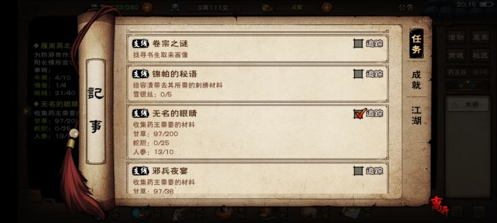 烟雨部分剧情记录----------------------------枫林晚跟陆凤先师兄弟之争做的也不错!『为人抱薪者,不可使其冻于风雪』ps:每次找药王我就知道自己要大出血,没想到这次这么黑😏