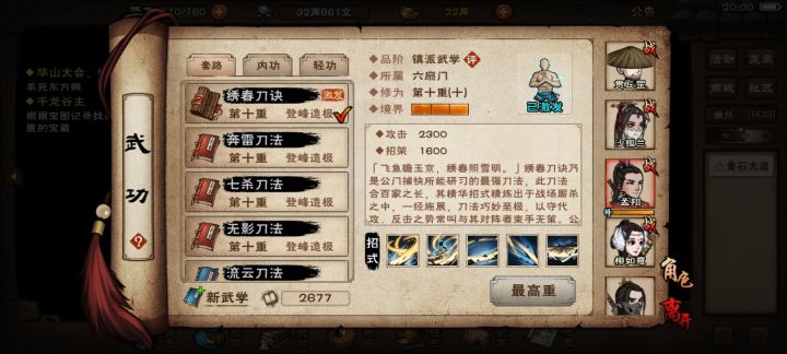 六扇门竟然只有绣春可以用的为什么不岀一个像西子一样的专用的秘技。
