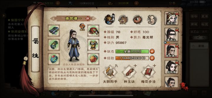 1⃣️强烈建议增加“取消突破”的功能,到了后期一不小心点到武学突破要耽搁好长时间2⃣️角色页面增加显示门派贡献3⃣️打斗页面增加进度条,可以看到敌我角色先后顺序,增加逃跑按钮