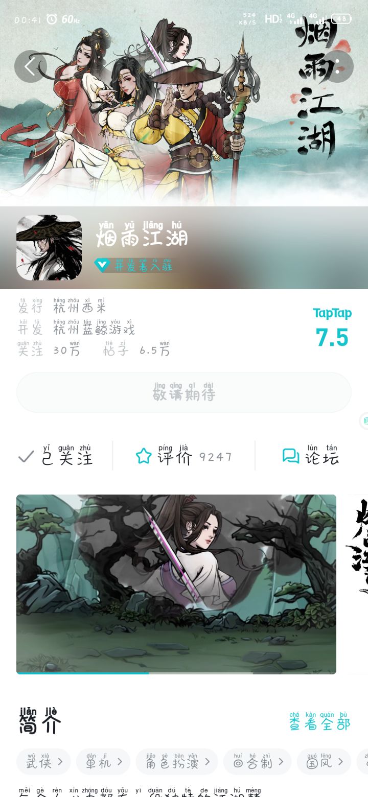 求解,为什么换了个手机没法在Tap下载烟雨江湖了,只有关注