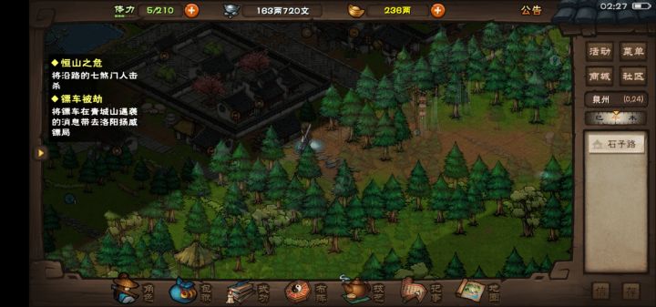 几个建议1在战斗时候,希望能有菜单操作,看看属性点点技能突破。2在跑图的时候也希望有点击菜单,看看信息、操作其他的事情。3跑图的时候能有任务指引,点击一下就自动走到对应的NPC。4屏幕不小心碰到就乱走,有的过程中点击地图,人物属性以及背包啥的别的不要中断跑动。