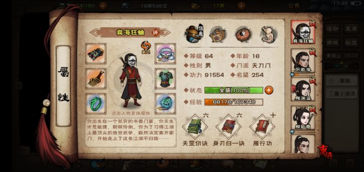 昨天接到八卦门招新任务时,贡献点已经快满了,所以就先没做,但是第二天想完成时却没有招募选项