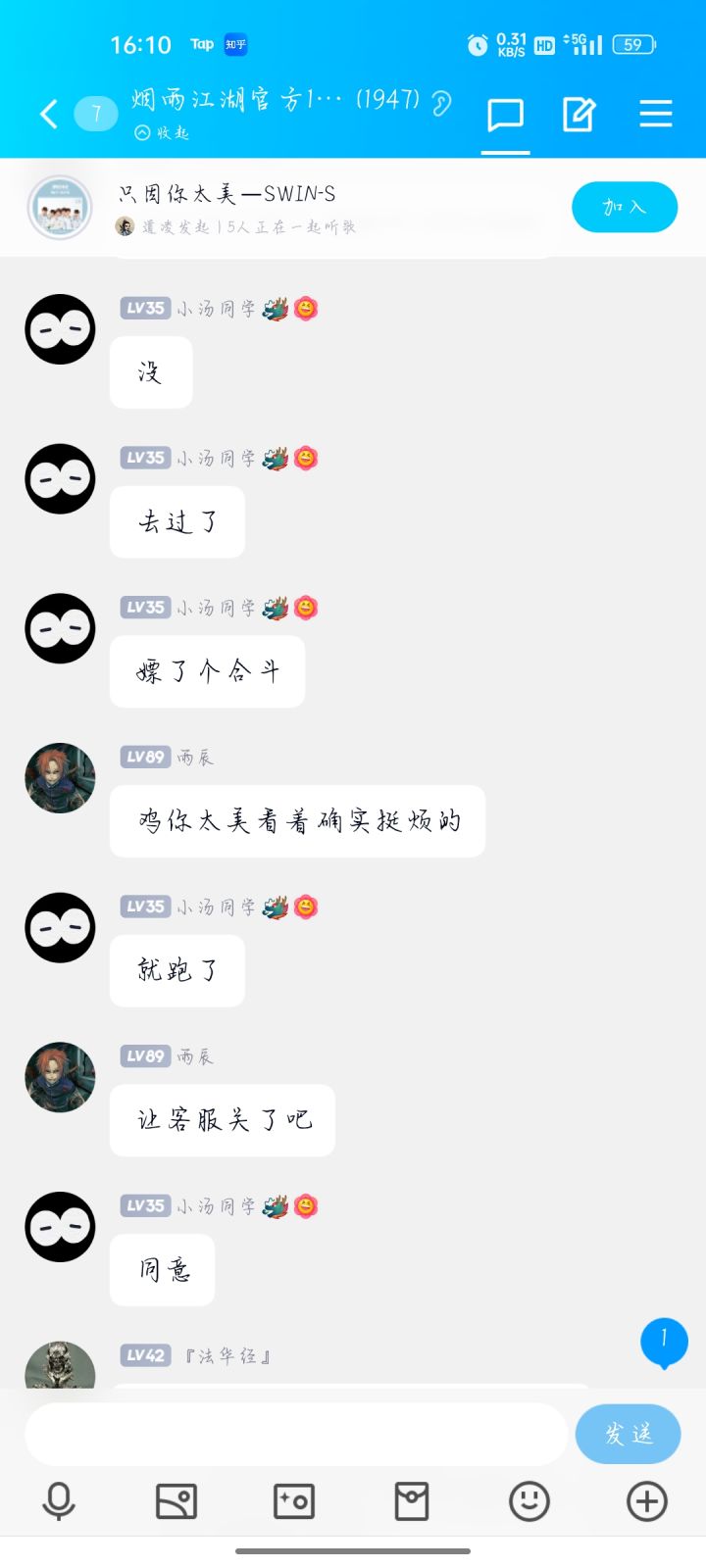 游戏官方现在在搞什么,游戏群一大堆根本没有人管理,有人在群里刷歌曲播放量,连续三个月都在刷同一首歌的播放量都没有管理管,而玩家联系管理,管理都是人机。我从一九年开始玩,因为疫情原因,中间停了一年多时间,现在回来玩发现是这个样子很失望