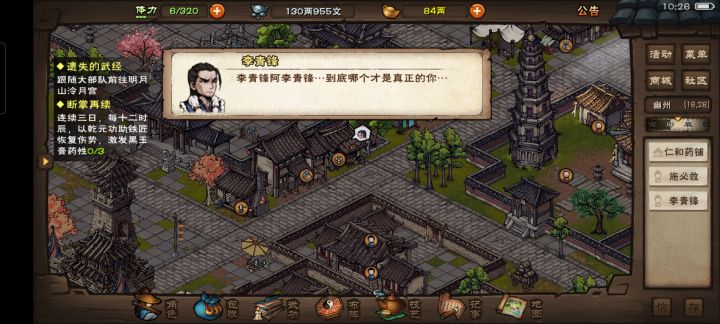 发现一个BUG,我完成了昊天塔任务并且将军争阵升至100%,但是李青峰依然在医馆里,江湖杂谈任务无法向李青峰打听,进行不了后续任务,请求解决。