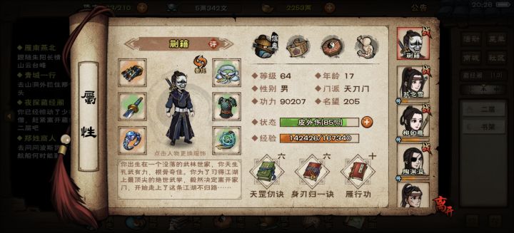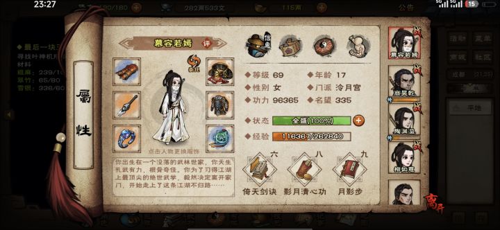 开局选初始随从任意一个(按自己喜好选)到南阳渡前基本上都是一样的(要注意提前做一下铁砂掌前置,避免重新跑回去一趟)到南阳渡要注意了(建议去武馆买本吐纳功给主角学了之后再送信,废了几个号开局不然很容易丢失前期神器戒指💍不出意外的情况下可以用到40级)送玩信打完劫车的劫匪后直接往跑到洛阳再向左跑到落霞镇客栈上面找陶渊益教他武功,然后继续回来做主线,南阳渡是个好地方有很多机缘(宝藏、装
