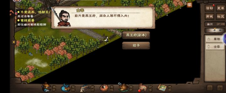 做主线做到如图,我给出来了,出来后就进不去了,士卒没有进剧情的图标,主线推不动了,咋办啊#烟雨江湖