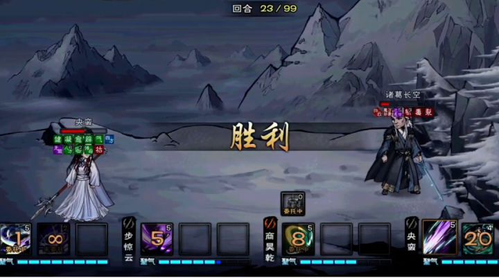 前天来只过了风林火山,李雷云搞不懂机制没过。昨天领了速战,最后次副本,来继续试,风林火山和宿命没啥区别,控制好顺序就过了,李雷云失败多次,才看懂机制,抢一次内力,提前用一次内力,循环两次就差不多,四时剑阵是真的白送,诸葛,开始看Wiki央蛮站中路,怎么都扛不住,后面去看了下武老的视频,让主角站中路,再后面发现我不能让央蛮站下前,我主角虽然面板攻击最高,但是要主角开大,随从平A才能抢到回合