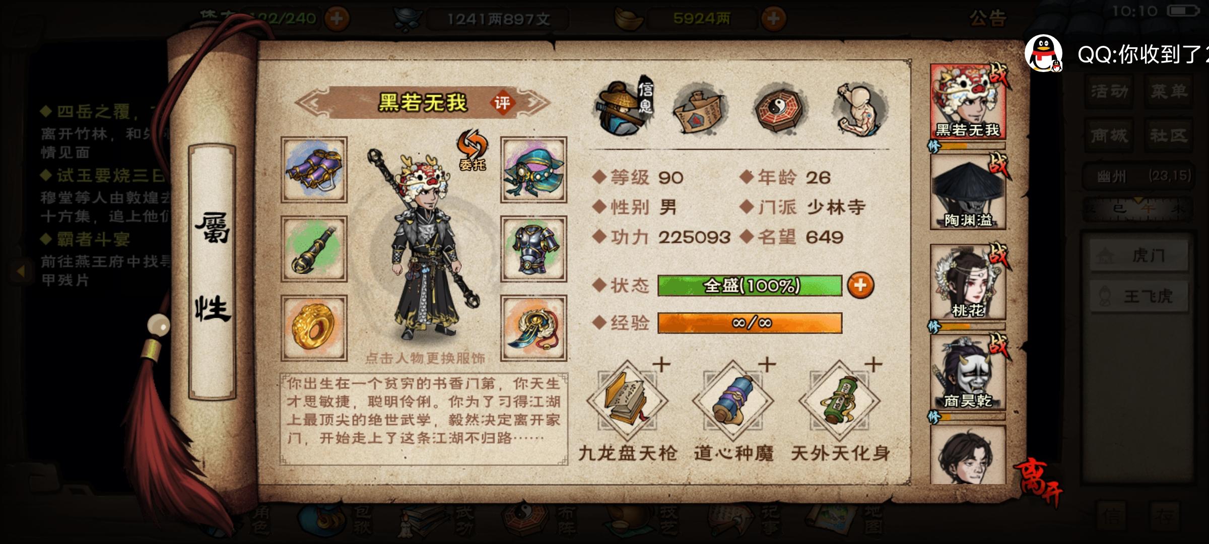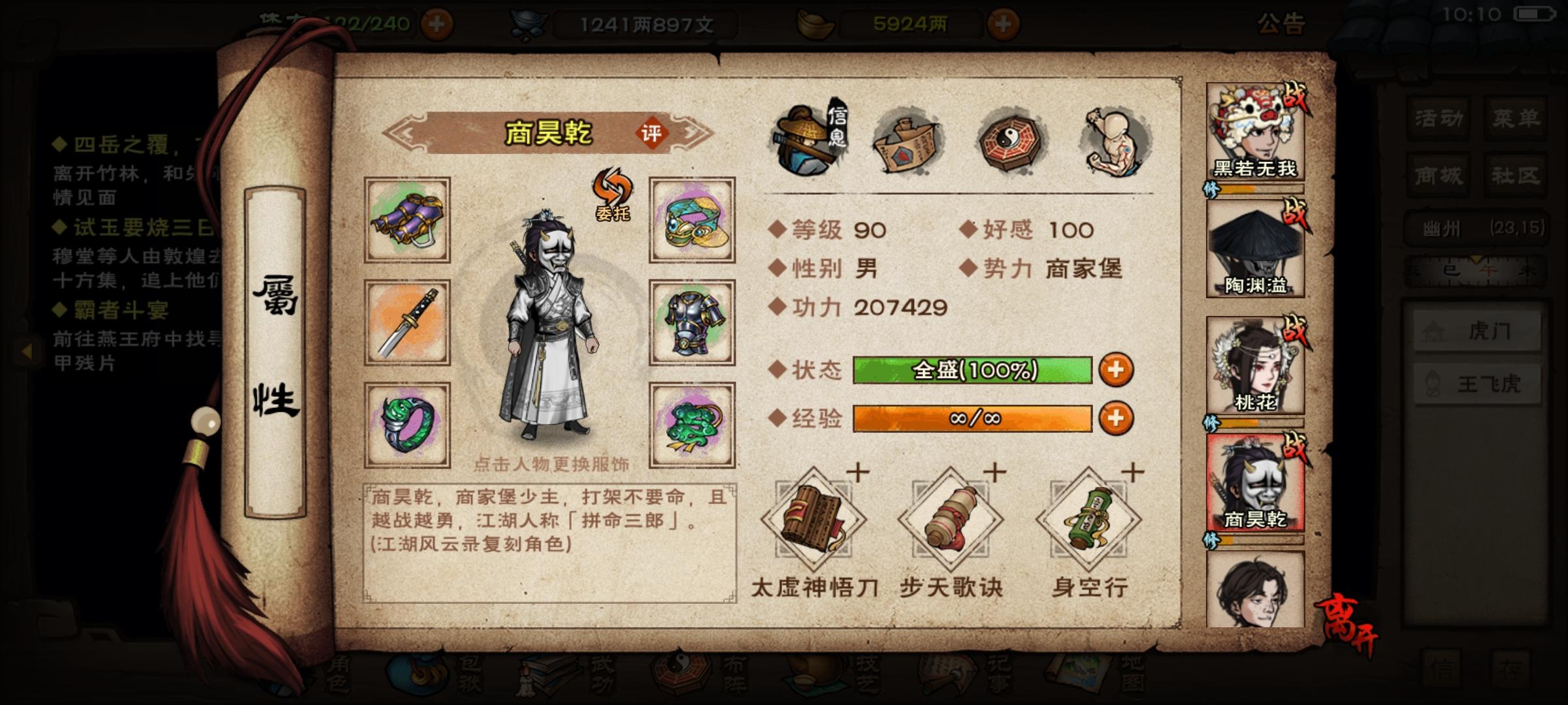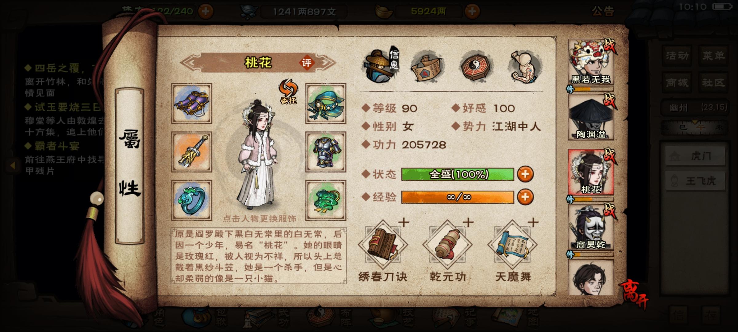 镇派伏羲刀法是给桃花还是老商啊,老商有太虚和寂刀,桃花还是90白板