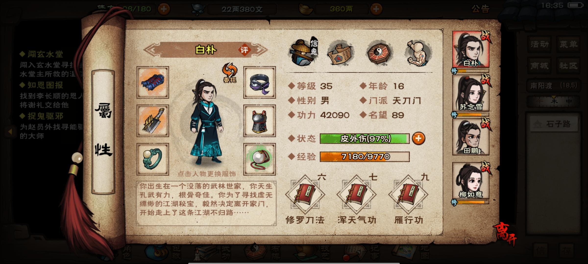 佬们,我现在用这套阵容过了燕王府,但是打燕王和公公的时候可能被闪避招架太多,还是会过不了。过年的看样蛮返场,想换一下央蛮,南天门已经正在练了主角在少林,学完之后要不要去天刀之类的呀?