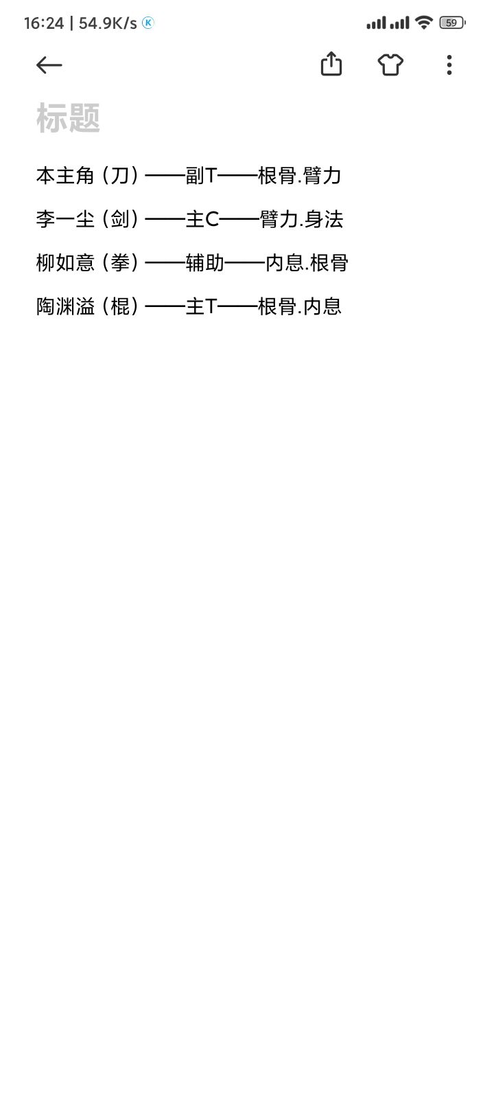 各位大佬好!本人之前接触过这游戏,但是也是懵懵懂懂,玩了一会就退坑了,最近重新入坑这游戏,也是打到了30级,微氪,开始注重角色搭配加点,自己看了点攻略跟视频,这是以下我选择的搭配,大佬有什么觉得需要修改补充的,请指点指点!