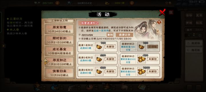 我的邀请码ACWWUF,烟雨江湖了解一下
