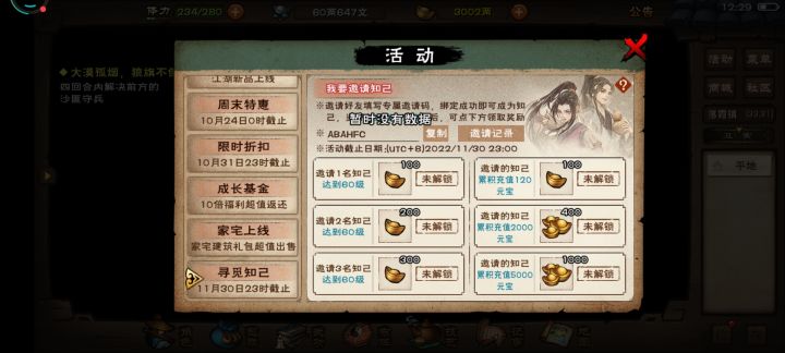 邀请码:ABAHFC,烟雨江湖,大家一起出发!