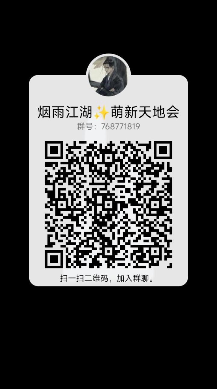 烟雨江湖新建萌新大佬交流群欢迎加入不管大佬小白,有问题都有人帮忙解决哦,当然大佬也可以分享自己的想法,大家一同进步,闯荡烟雨江湖,早日跻身大佬行列!群号:7687718