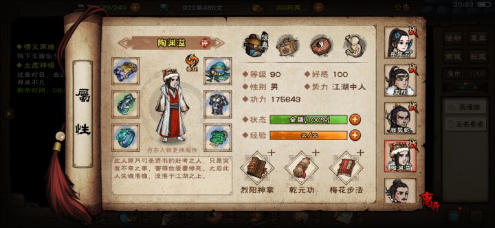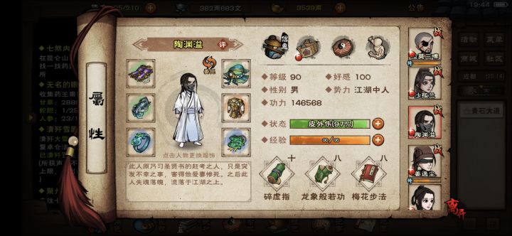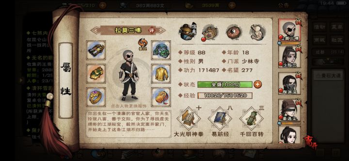 18岁,愈血丹,弹琴,涂毒,烧檀香,今天一次过了江紫衣和天一老祖。战力还不到wike写的七十万,还差一丢丢,我准备天一一套给陶渊溢,烈阳一套给瞎子,五狱龙象先凑合给傻姑懒