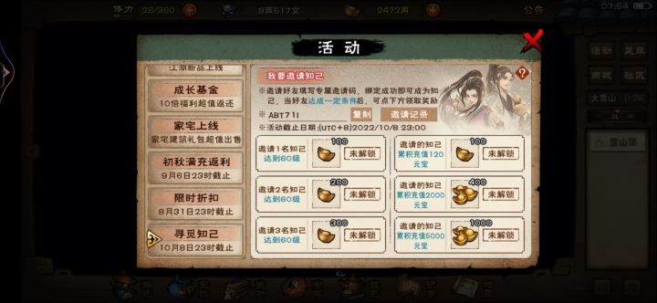 我的邀请码AA7S6F,烟雨江湖了解一下感兴趣就加一下罢😆😆😆