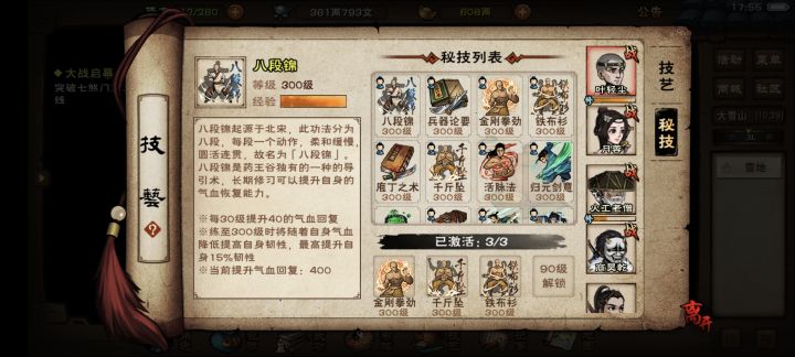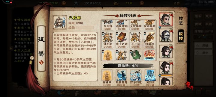10,梅花桩,幽州武馆门口的梅花桩跳500次,有175两银子,大量阅历,前期巨款了,50级解锁无限模式。