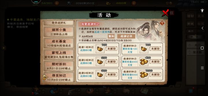 有无想氪500以上的新手大佬,但本人氪金较少,我的邀请码AA22Z7,烟雨江湖了解一下