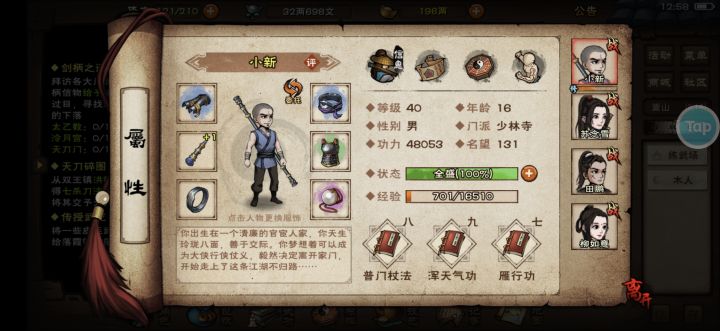 现在是少林棍然后商刀准备换个薛,还有一个微位置有什么推荐的吗,加六扇门了,用钟拉第一梯队行吗。刚43级