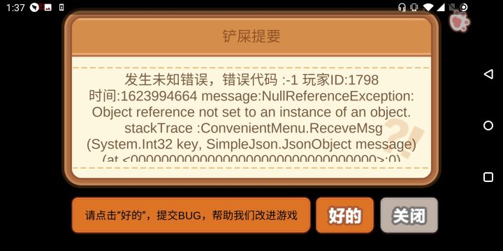 今天出了几次bug,不知道是手机的问题还是游戏的问题