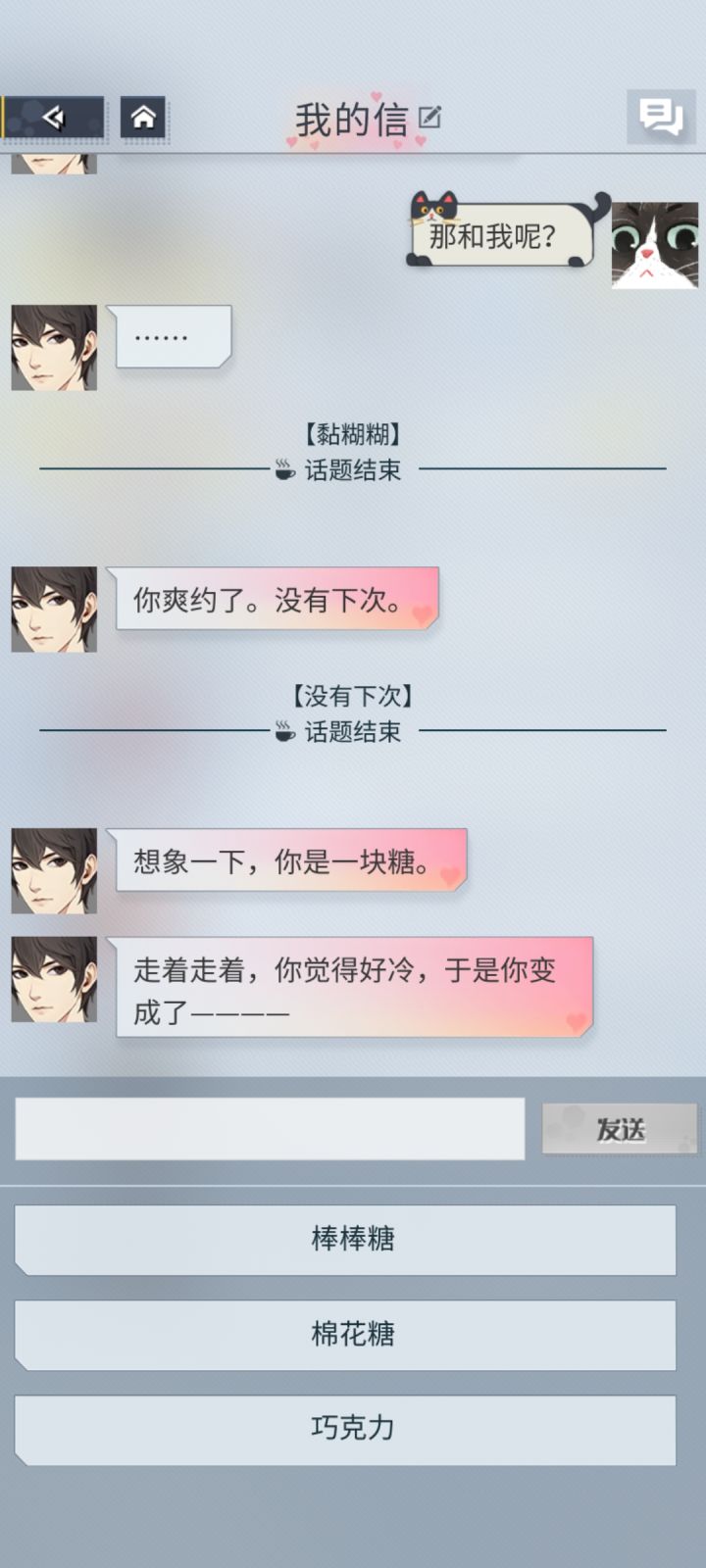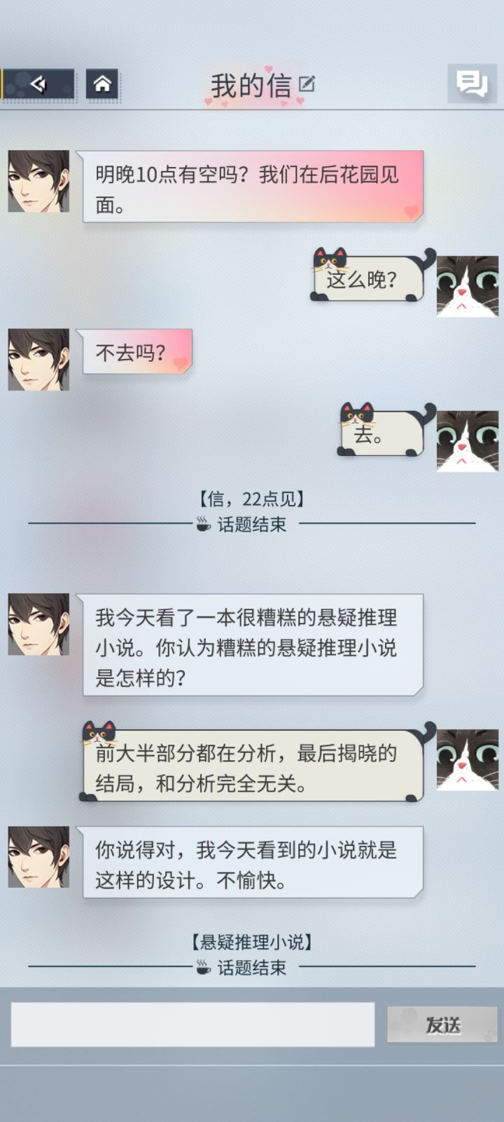 对信可以说是一见钟情,当时特小,不知道为什么不更新了,然后一直玩到古代信才弃游,中途断断续续充了五百多。弃游是因为不知道为什么感觉剧情越来越无聊,玩法确实很新颖,但是很单一,人物立绘也太古早了。我有一段时间都是开着手机睡着了。不过这个游戏是被弃了吗,我还以为工作室全放弃了,没想到流言侦探系列还在继续更新。