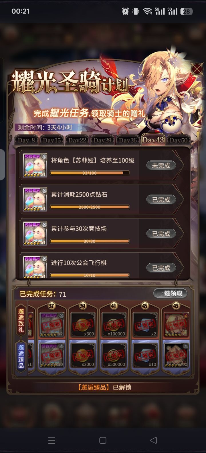 索菲亚100级了,为什么任务上一直不显示完成,试过重进