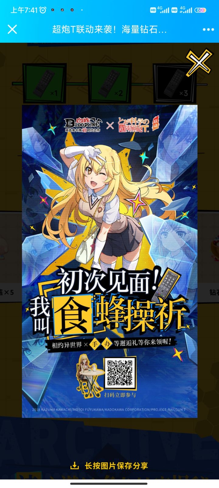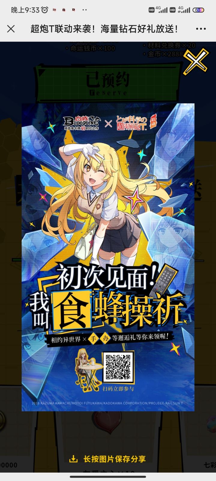让我们一起成为回应奇迹的人,共赴食蜂操祈的祈愿之约,快来和我一起吧!血族 x 某科学的超电磁炮T 联动1月21日开启,食蜂操祈手办等你来领:https://actblood.web.sdo.com/project/2022/1216_YuYue/index.html?invitecode=69CAC84DC7844FF4A072