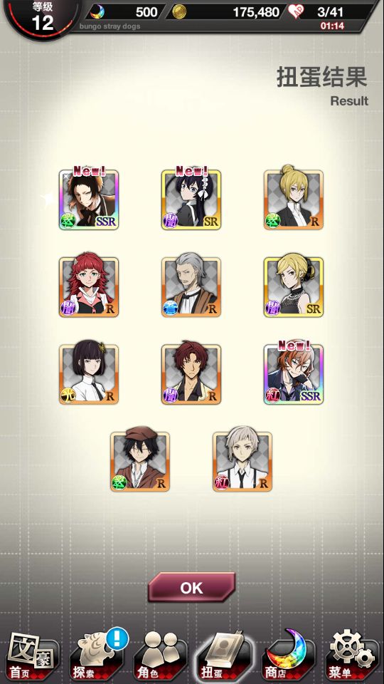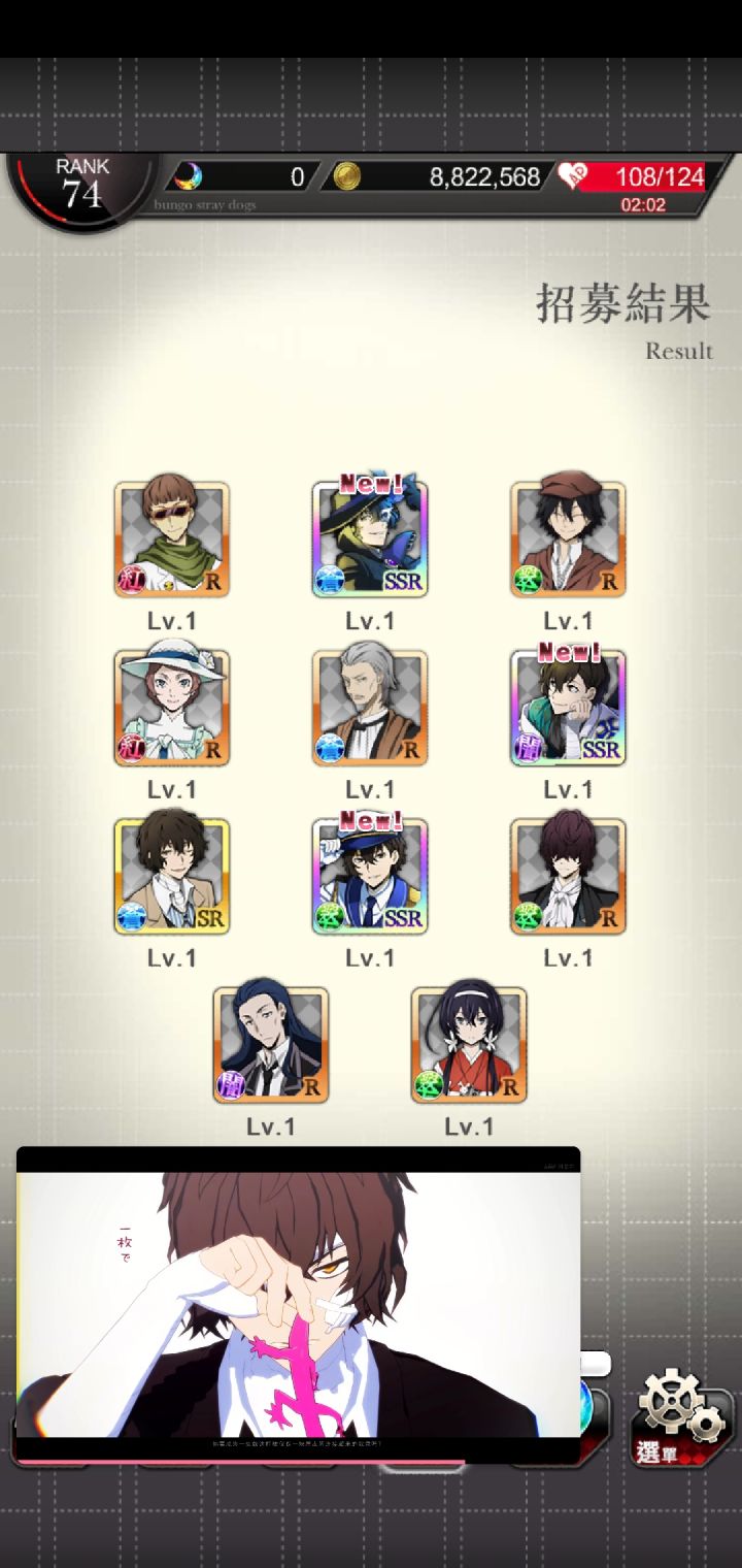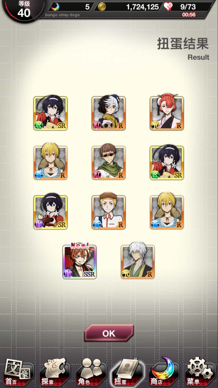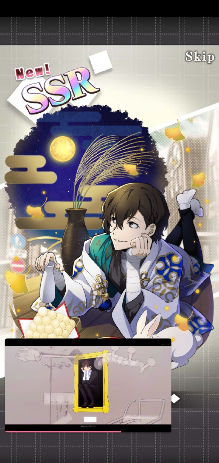 爽啦,刚开始玩,只要出ssr就是双黄辣个正装池子我怕浪费石头犹豫了好久,结果第一发就出啦!两个都到手啦!我哭了第一次被抽卡游戏这么友好的对待这个爆率是真的可以我永远喜欢文豪野犬呜呜呜上面是0405我真傻,断过月见黑的人怎么会突然变欧呢这是新 人 诈 骗啊