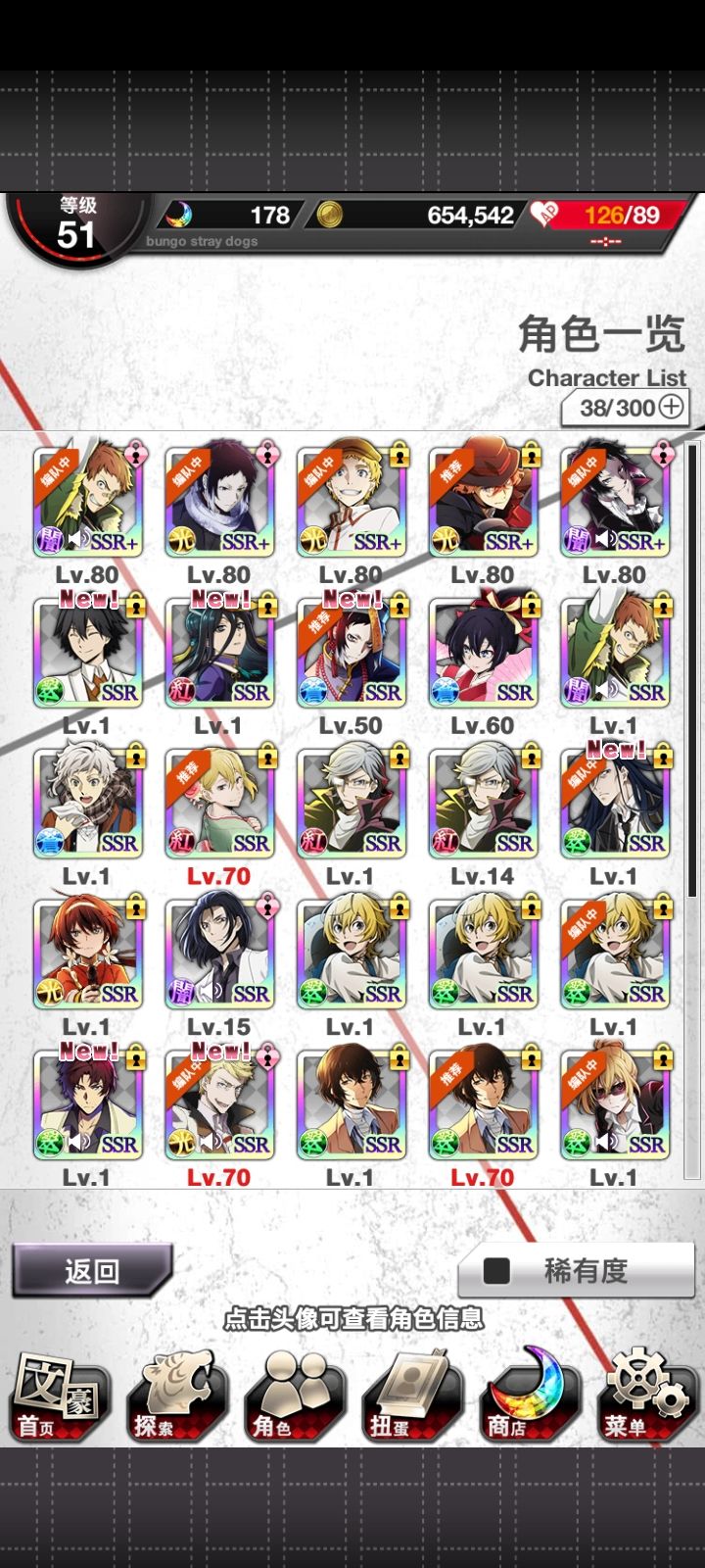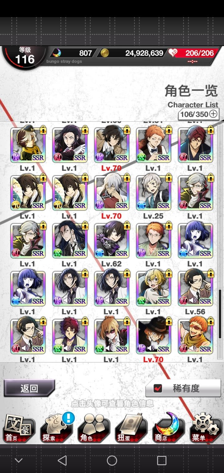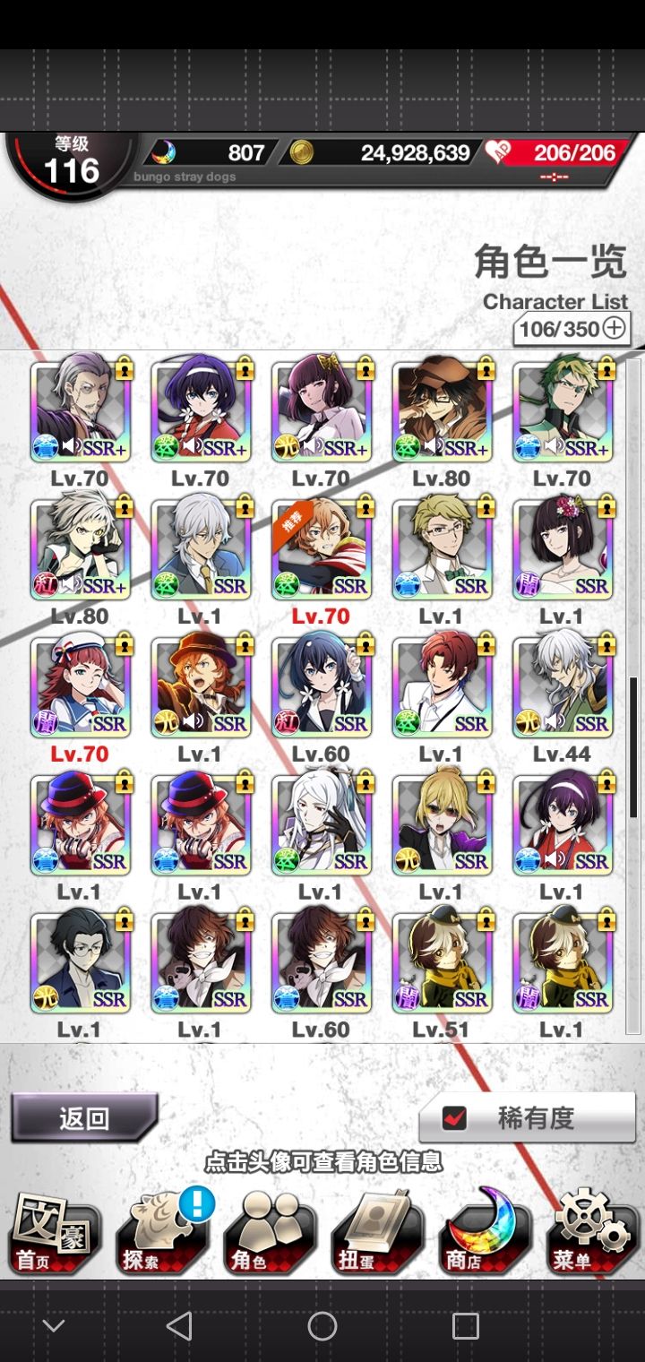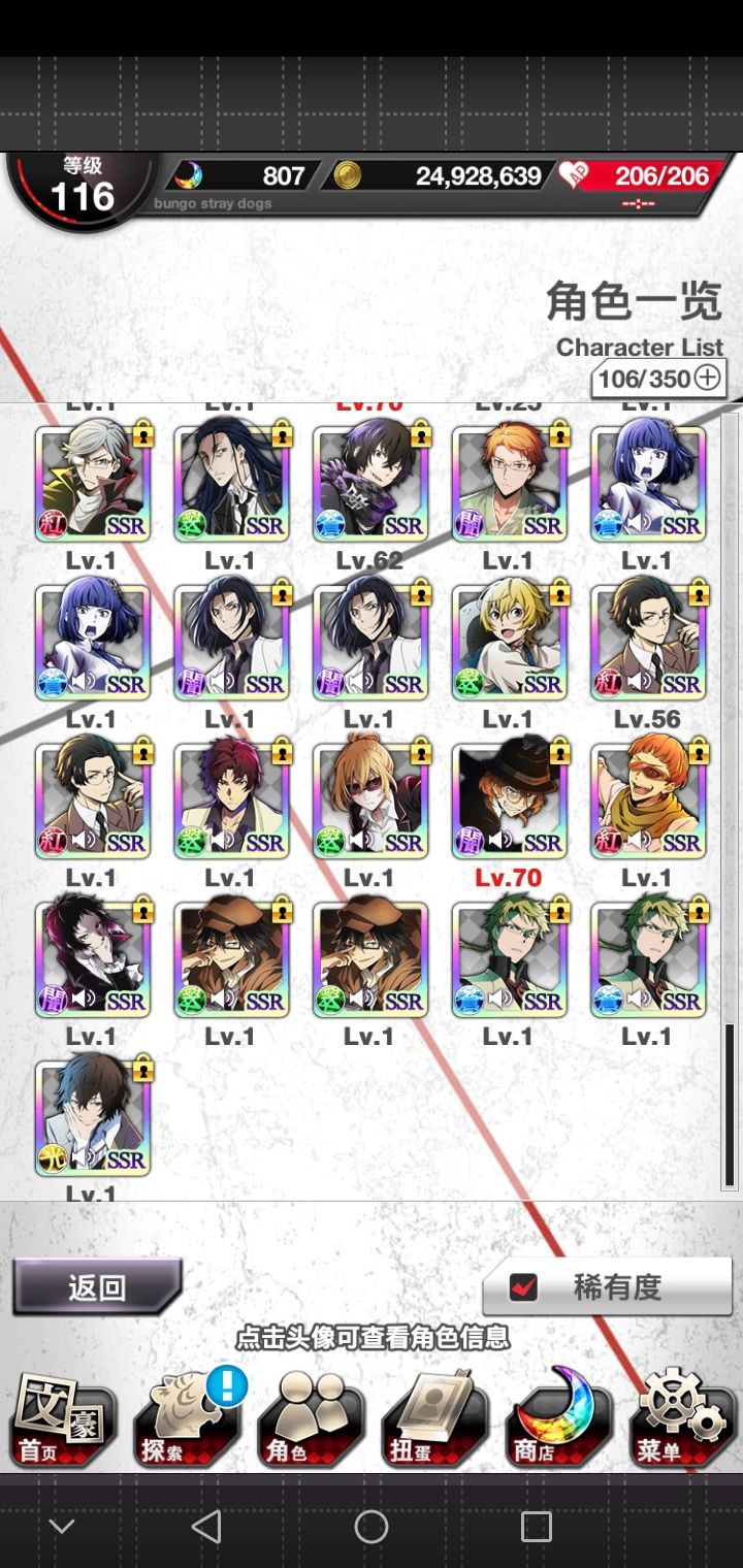啊,入坑起码有半年了,先是在另一个手机里的,然后还好我这个号码没丢,又重新搞了回来。那反正只有肝肝游戏才能得到SSR的样子,才能勉强活下去。反正你在游戏里面,蓝色月亮是有紫色月亮是有,红色月亮基本上就是没有,啊,好多红月亮。反正只有肝肝游戏才能勉强生活的下去的样子啊,有好多好多个重复的,还是慢慢继续肝下去吧吧。爆率也还行了,反正玩了这么久。