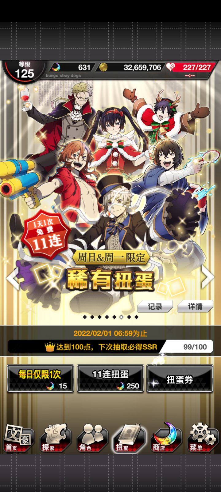 虽然不是阶段池,但陀思还是来找我了呜呜呜!免费抽限定又刀我,圣诞安吾让我再次想起了圣诞三人组差太宰,可恶!