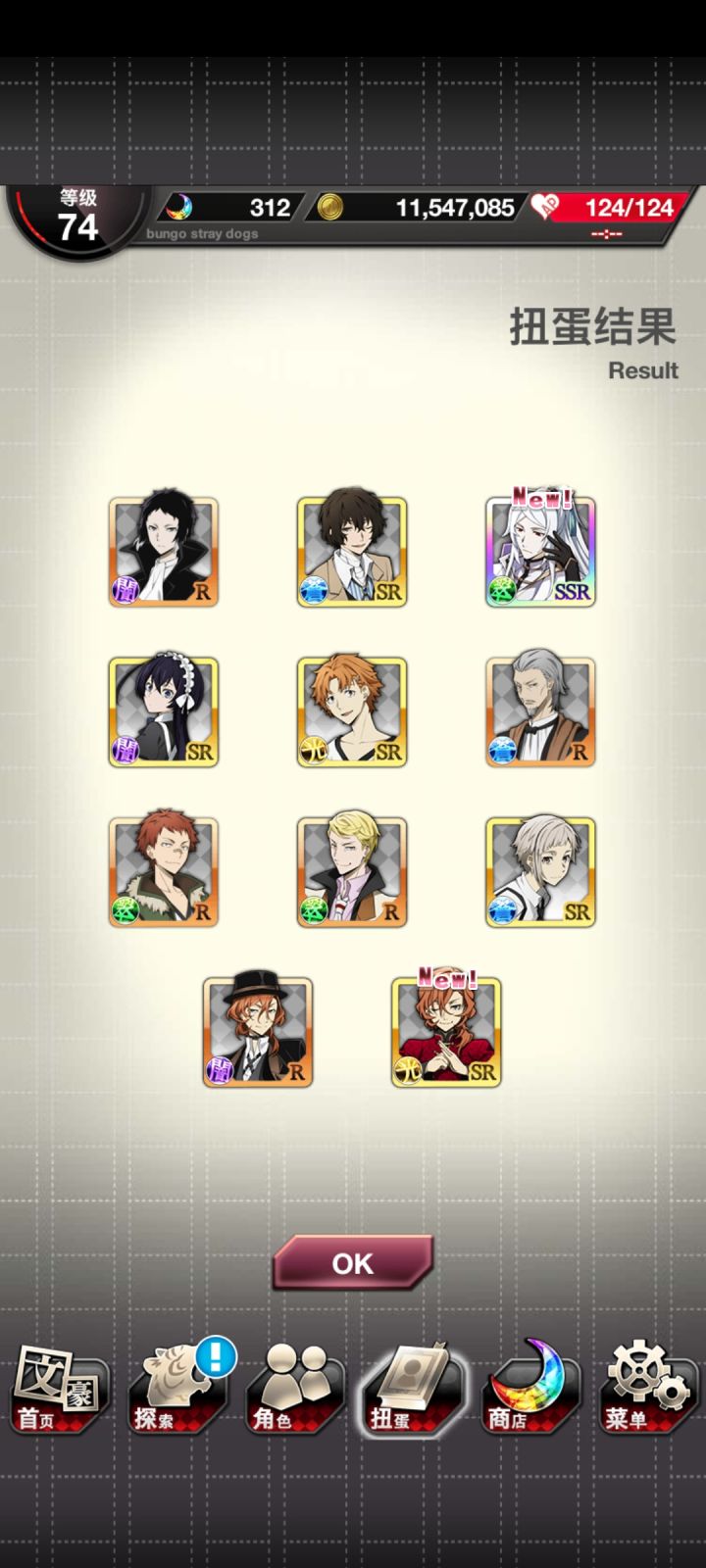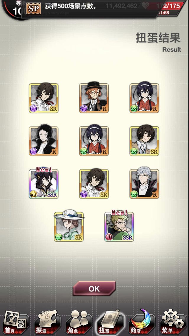 Orz之前中华池抽完石头,转眼精选池……挖主线石头攒到了s3,抽到宰了。快乐。这次也想要乱步,没抽到。好想要社长啊(这样苍队就两群攻刷副本超快der)