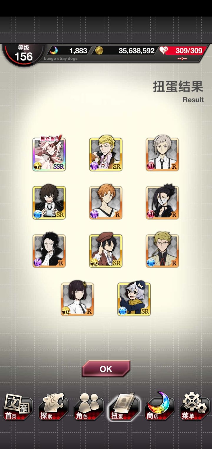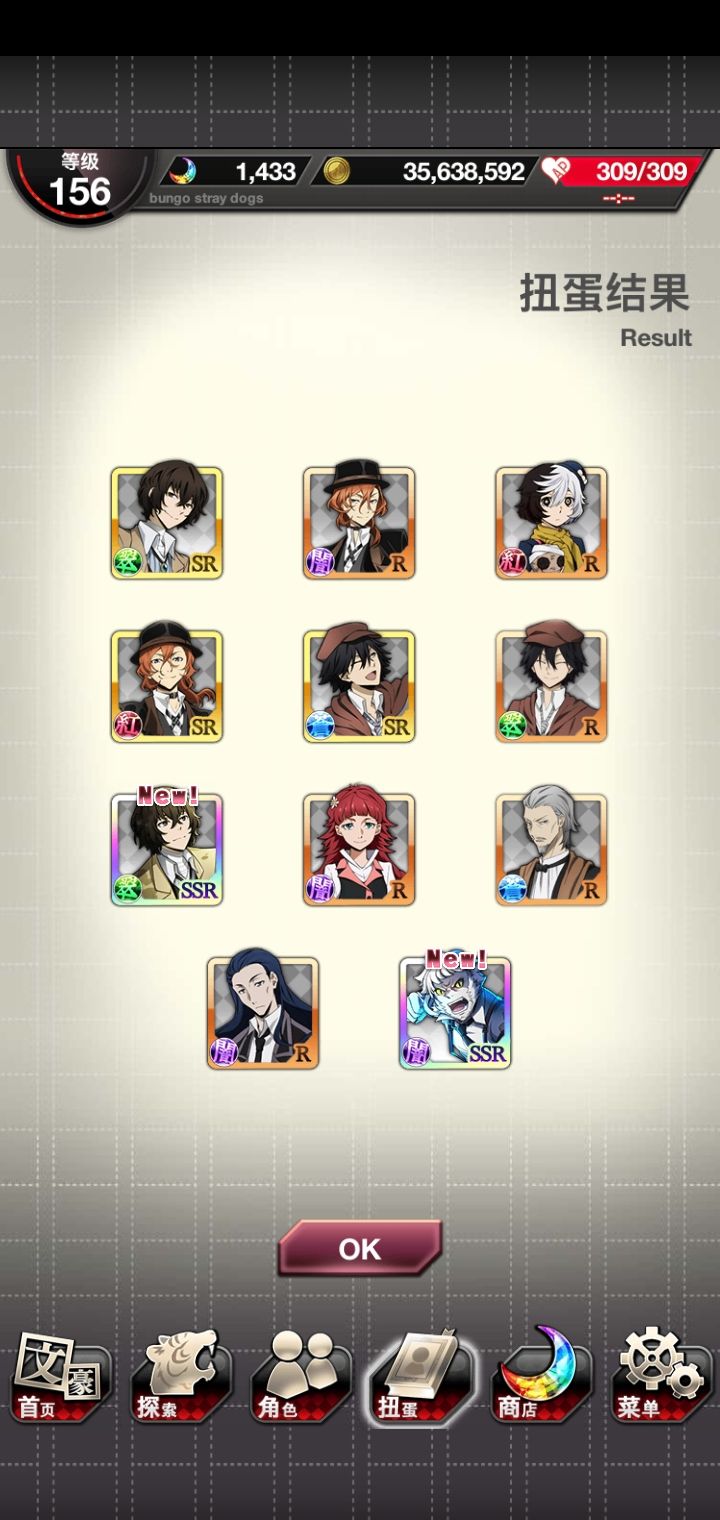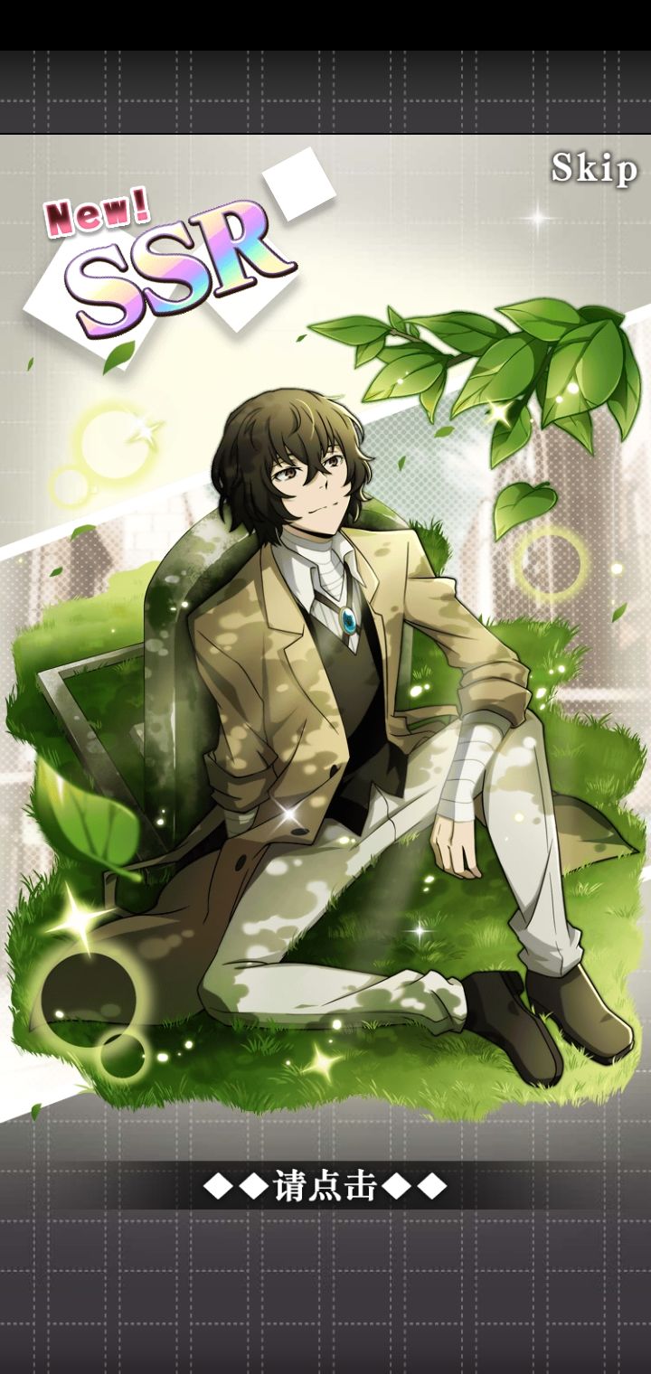 追忆宰!!!!终于来了!!!!s1普卡织田作,s2涩泽,s3追忆宰!!!这个卡池就差芥芥了,但是我没石头了