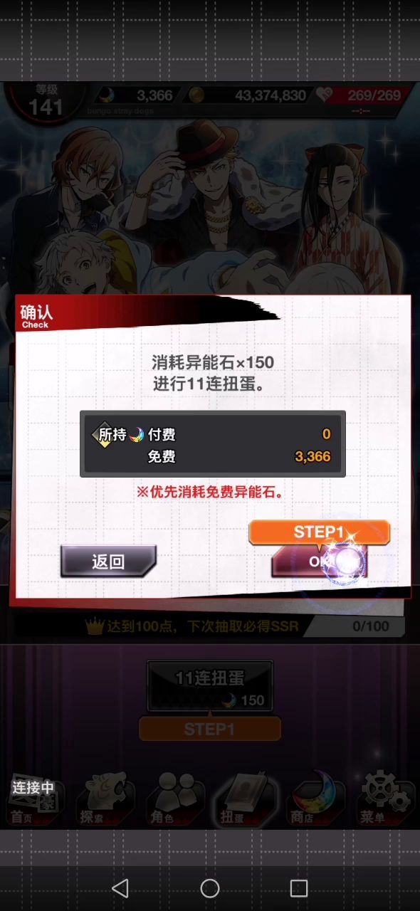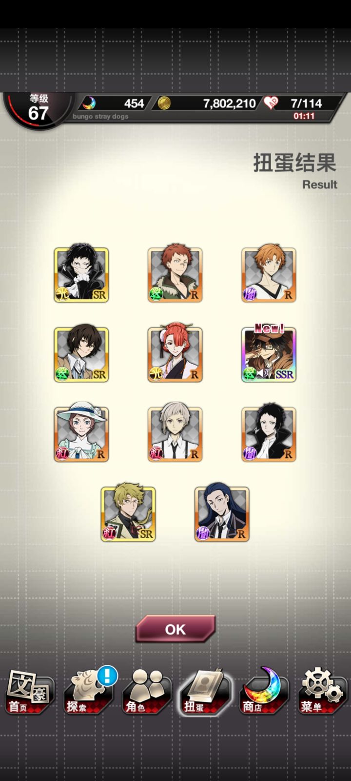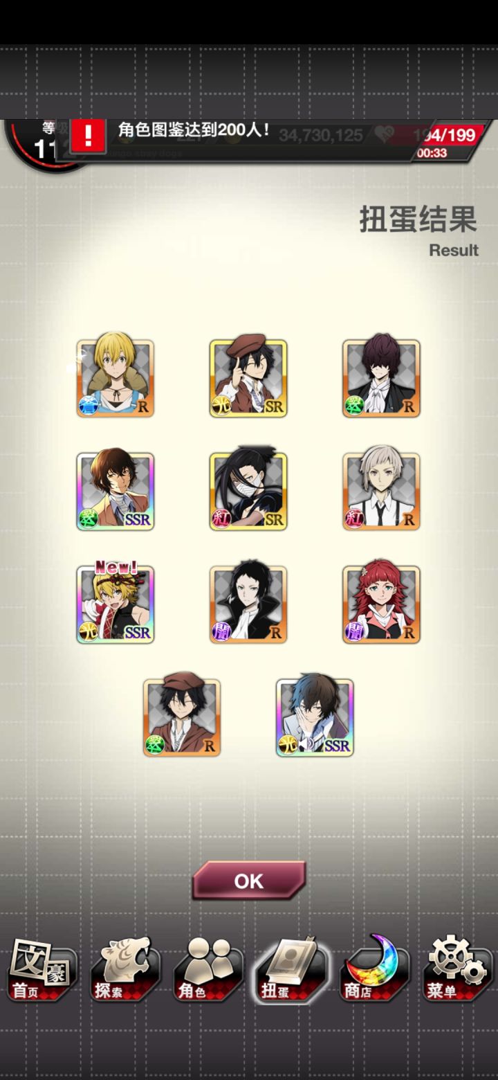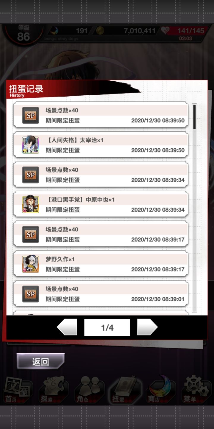 追忆宰!!!!终于来了!!!!s1普卡织田作,s2涩泽,s3追忆宰!!!这个卡池就差芥芥了,但是我没石头了