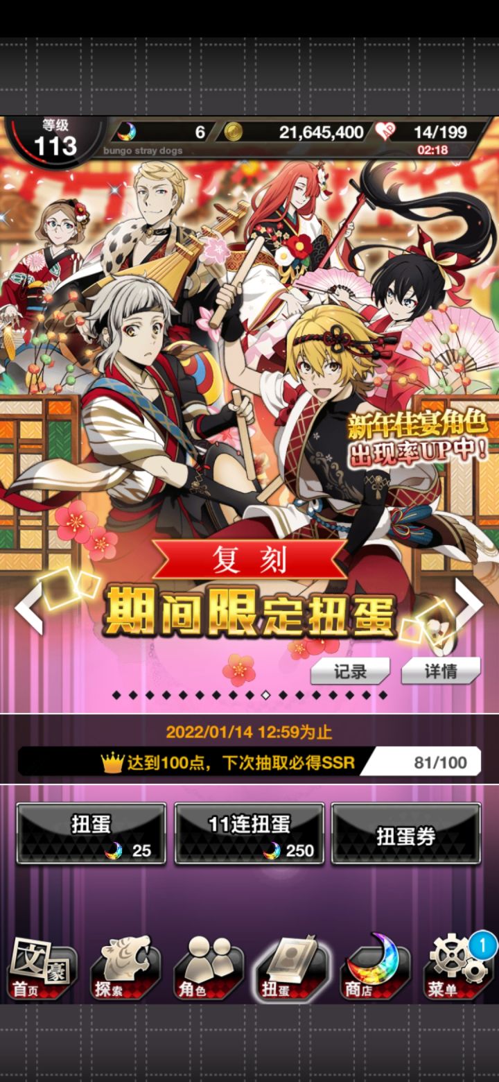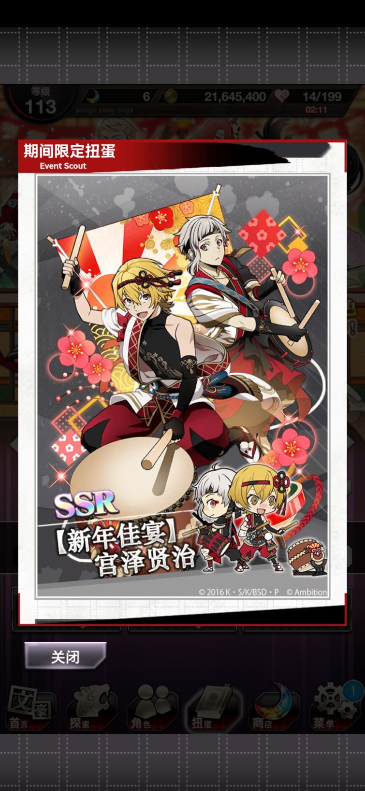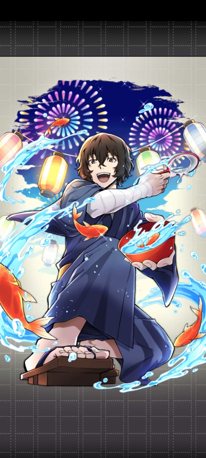 看到别人的帖子才发现限定卡进普卡池了,有一张我没有的夏日祭宰好耶!立即进行一个45连抽,结果宰就出来三次,一个人间失格普卡,一个异能无效化普卡,一个新学期不是new,就是没有夏日祭🙁其他new倒是来了几张,其中乱步的圣诞节来了5张,但是不是new算了以后一周两次免费十连我就不信我抽不到夏日祭宰🙃