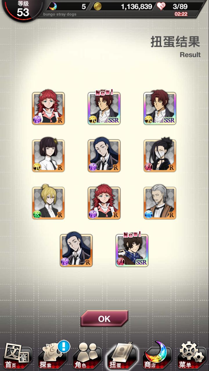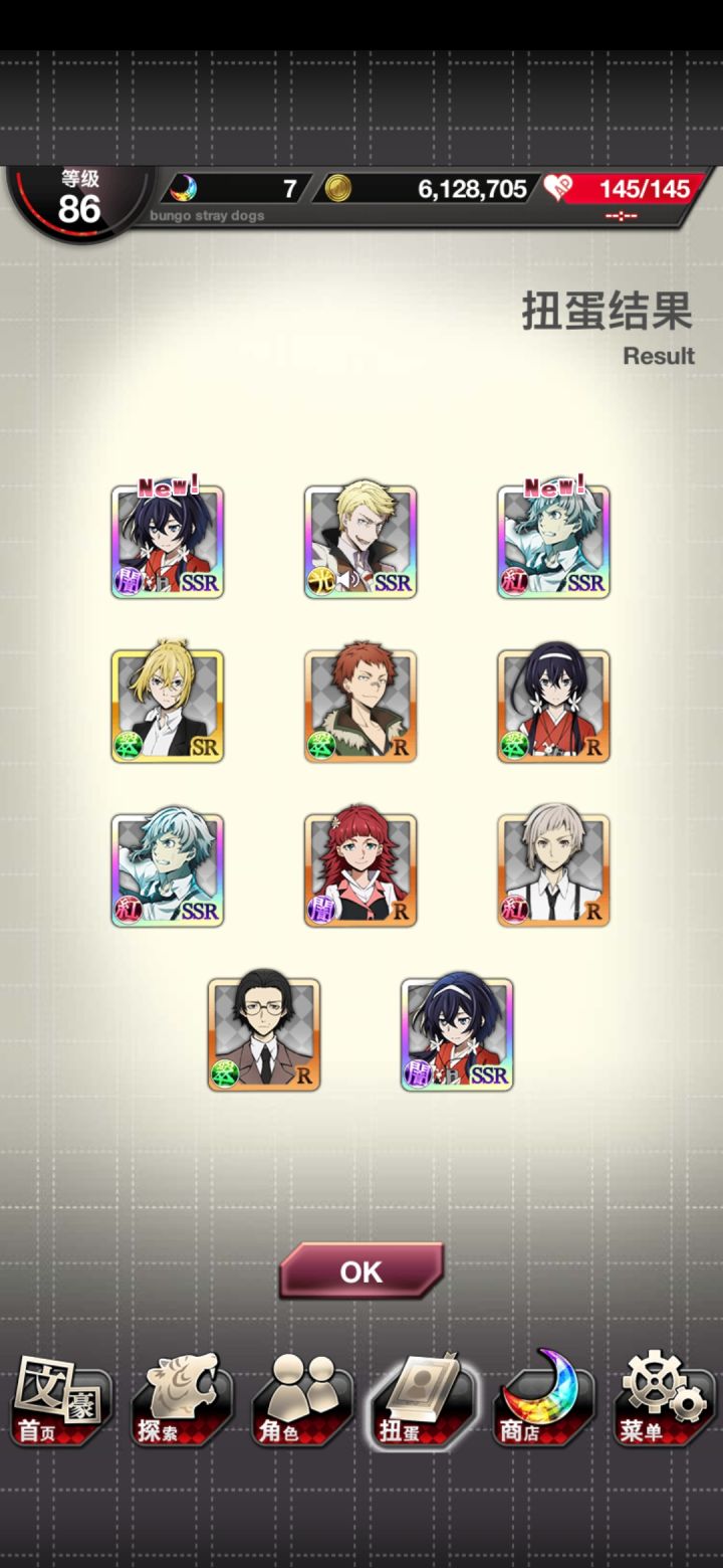 我从来没这么欧过如题,本来打算只是觉得现在人少抽一下说不定能改变我非洲人的手气,抽之前还诚心的祈祷了,结果居然真的第一次就抽到了,还是三个抽之前只敢小小的肖想了一下,看到紫月亮之后就松了一口气更多的还是想双黄,三个完全没考虑过该说不愧是二倍池,天知道我看到人间失格的时候还想着千万别重了唯一遗憾的是我祈祷中也来着请给我来一只中也吧,一只都没呢