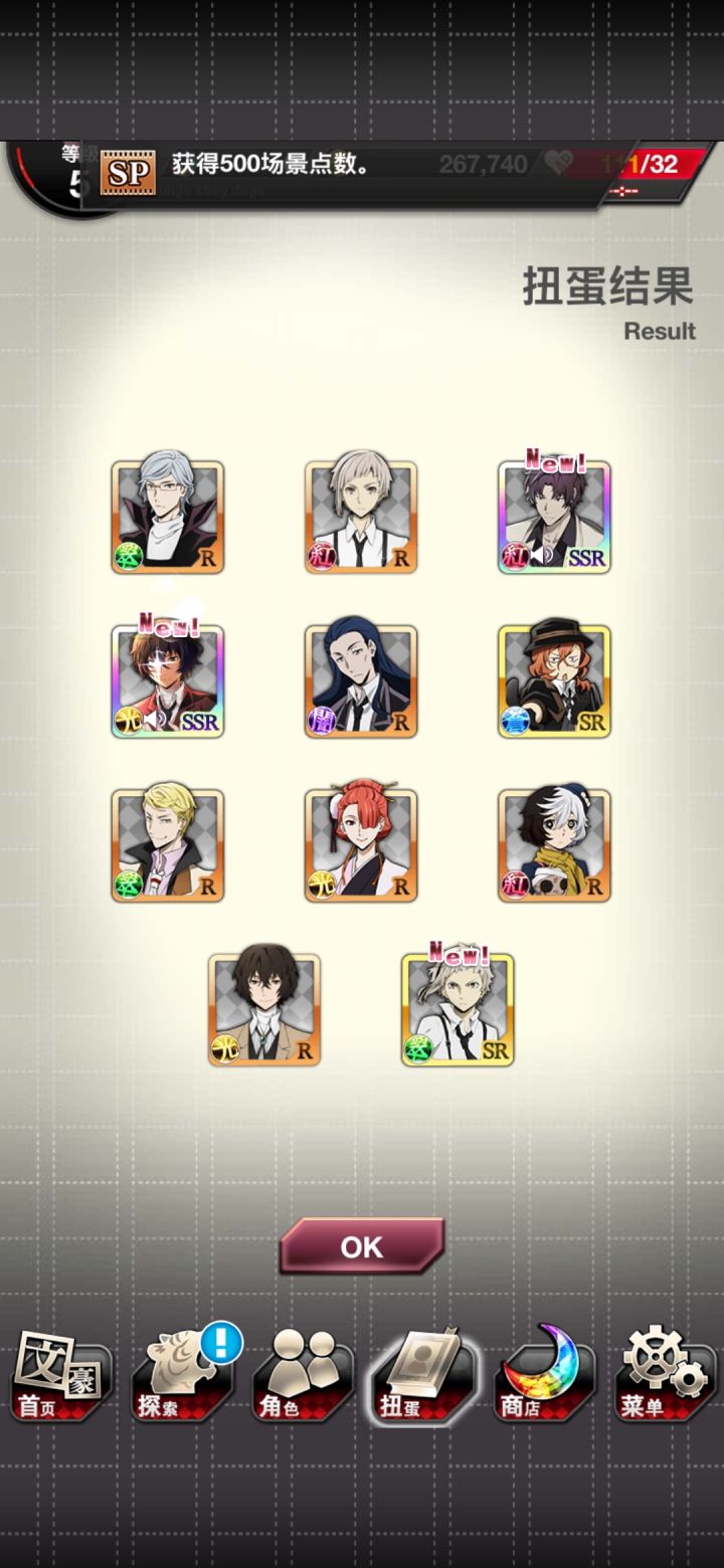 石头都只有10个了,扭蛋券用完,最后一发石头单抽红月竟然出的SSR,扭蛋券出的SSR还多一些