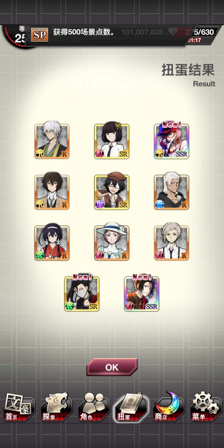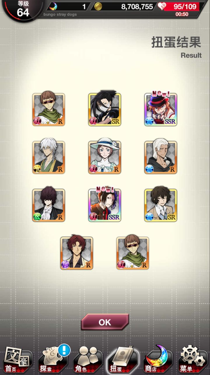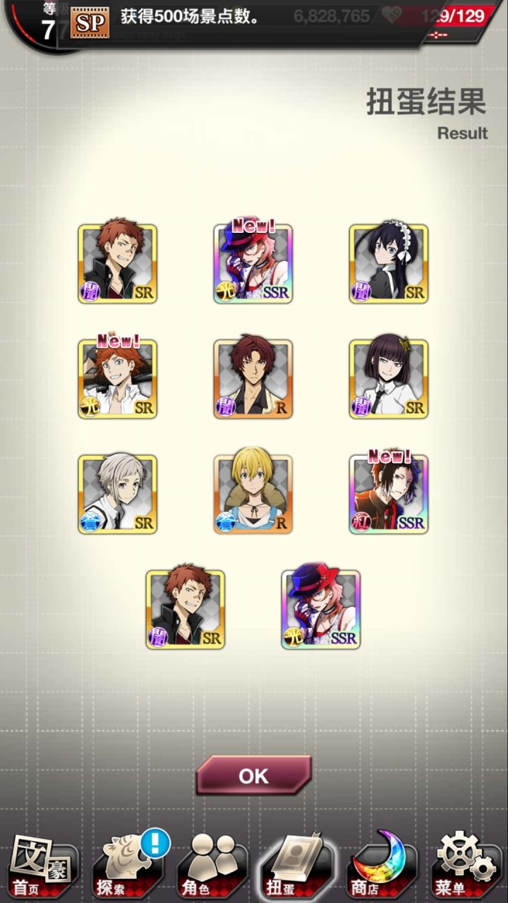 砸了差不多两千石头只抽到了一张音乐祭中也和三张乐队柠檬,我还想要张乐队中也啊!还有一千多石头,今天手气不好,明天继续