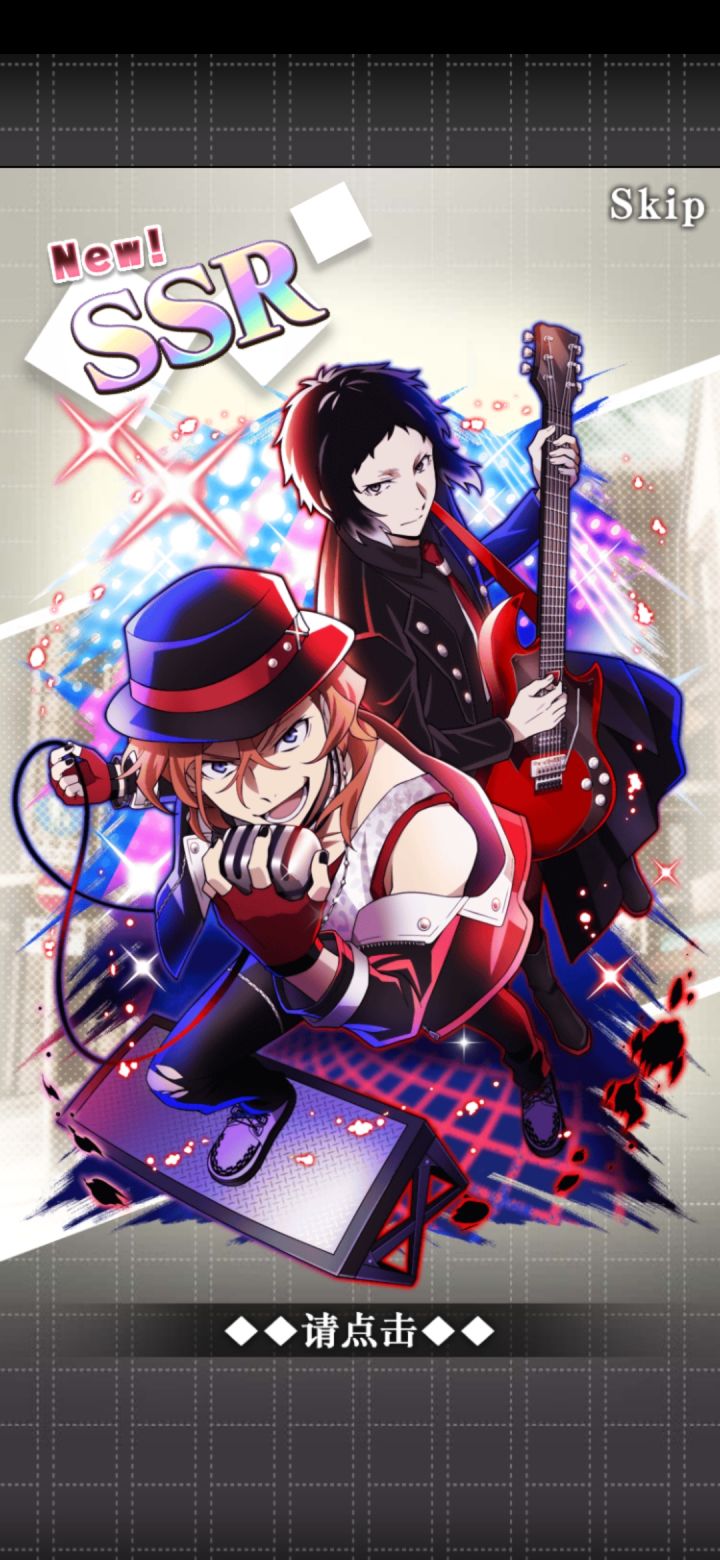 三发搞定√想要的两个中也都有啦√大概是对这半个月左右非气的补偿?s1 非在意料之中......s2 读条+紫月惊喜!开屏污浊狂喜!!!s3 一如既往地保底位ssr呢 读条+污浊......!!!十一连3r中也疯狂暗示哈哈又一次印证了中也爱我♡另:算是抽到了第0.5个活动芥哈哈(活动芥绝缘体质×)
