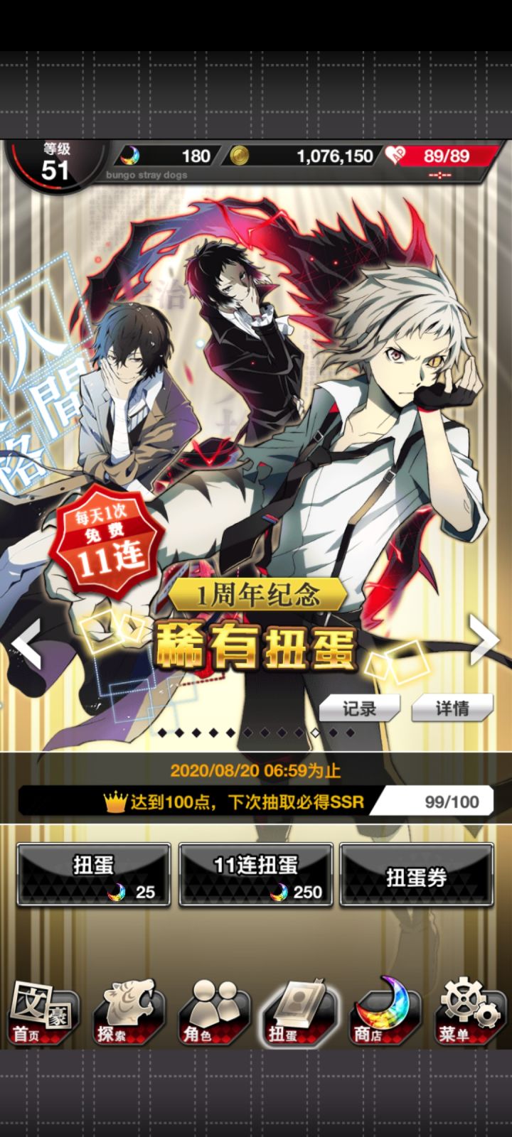 最终还是用特别兑换券强娶,不会吧,双黑你们…抽了三个十一连,两个紫月都是宰,一个红月两个中(大怒)