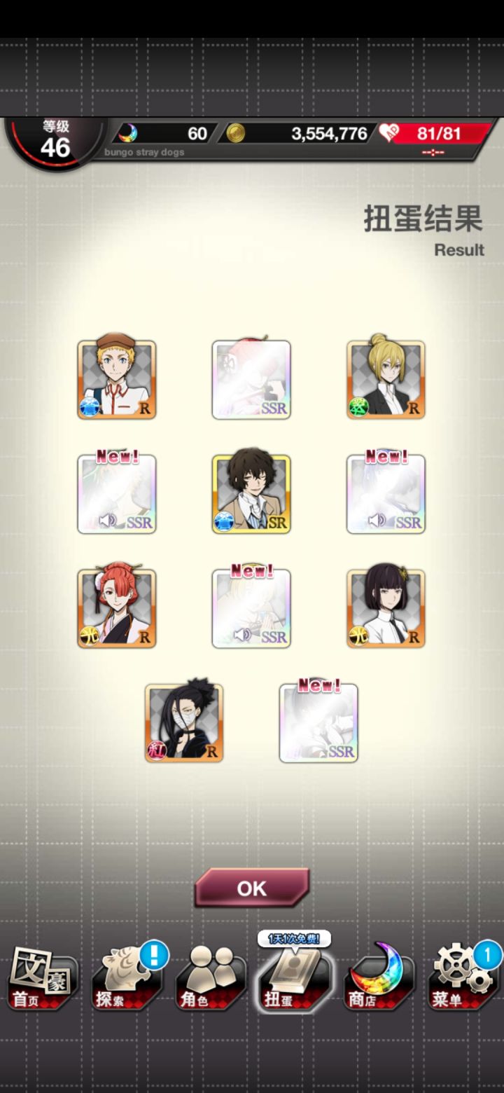 非了这么久周年终于欧了,S3侦探毕业,最后一发3张。早上异能又是死斗织