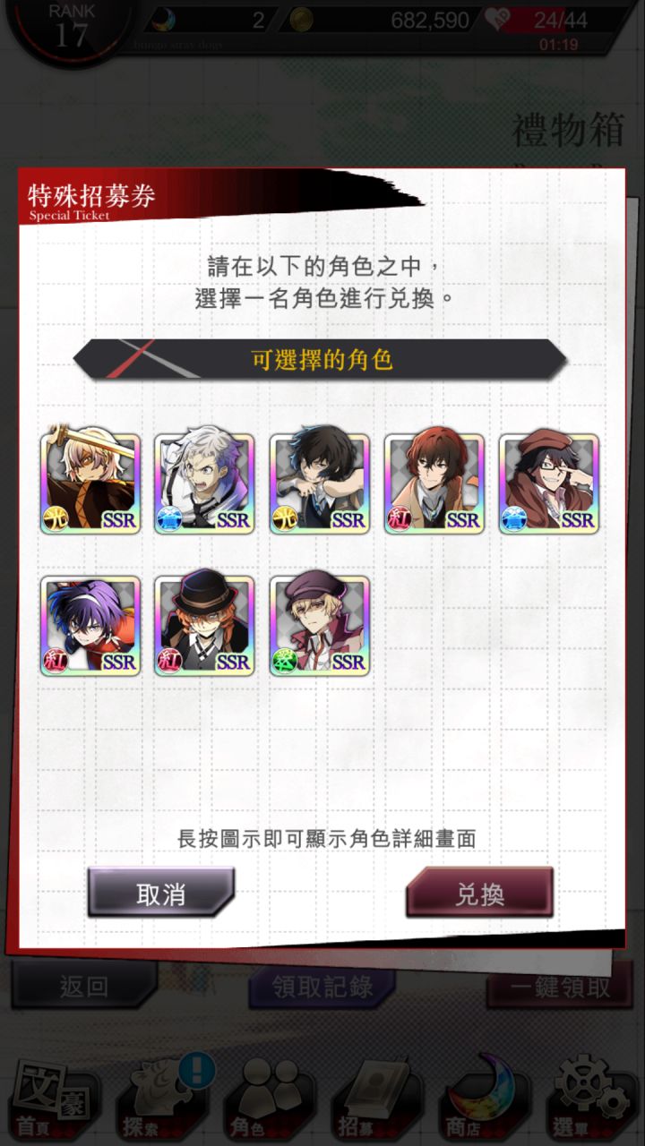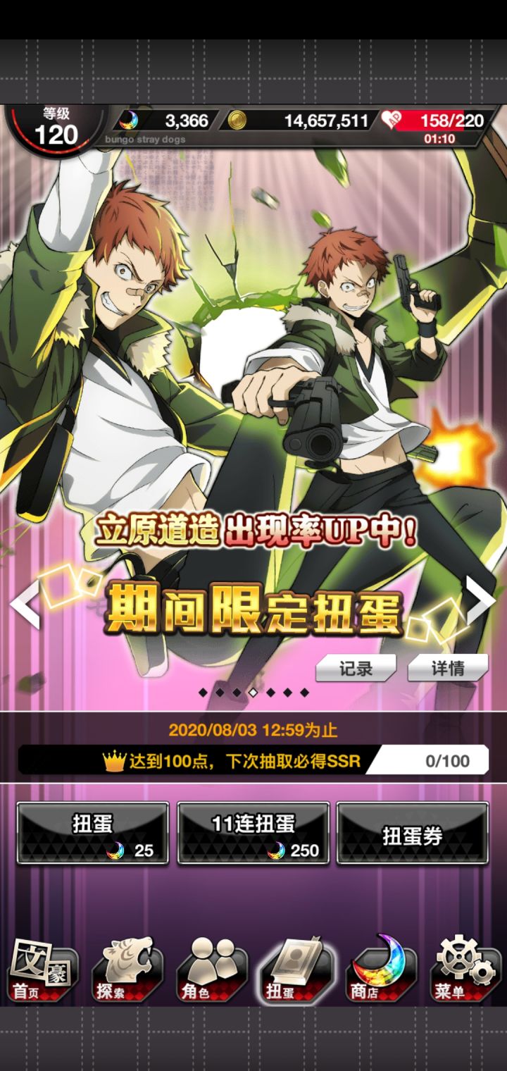 非得一批的台服,最后还是靠特别兑换券把太宰和乱步换回来